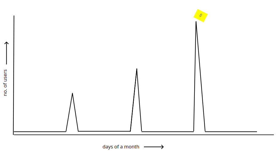 The traffic spikes are a bit predictable - we can tell when they are about to happen. We can’t tell the traffic volume accurately, in requests per seconds, but we usually have a sense of the number of users arriving.