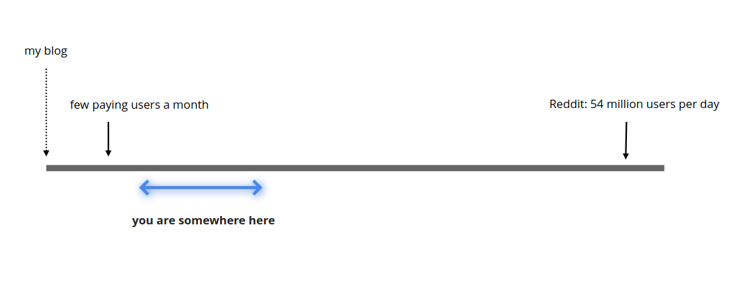 I’d like to insist this is a very viable setup for many businesses. Many businesses earn steady revenues out of a stable (sometimes small) number of customers. The value (and revenue) comes from what the software does, and not from the number of users it has. My previous project, which was a B2B healthcare application, ran a similar setup for years while we grew from zero to hundred employees.